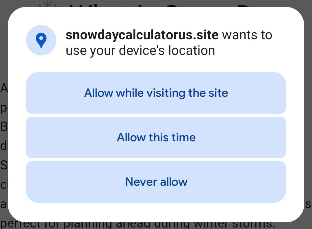Visit the Snow Day Calculator page. The page loads fast and works on phones, tablets, and computers.